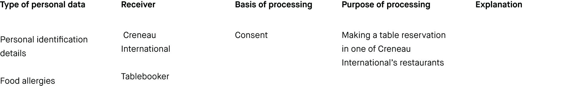 When you make a reservation in one of our restaurants by phone or online, we ask for your identification details and, if necessary, information about food allergies.