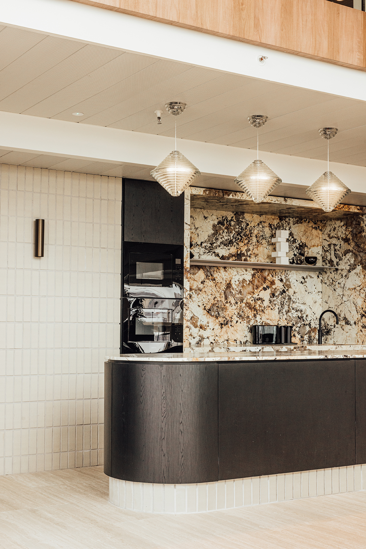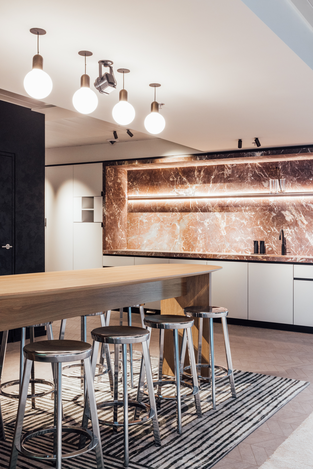 This sense of connection is amplified by the new staircase we installed, replacing the old narrow spiral stairs with a wider, open one. The staircase invites employees from different floors to cross paths as they head to meetings or grab a coffee in The Cube, turning it into a true meeting point.