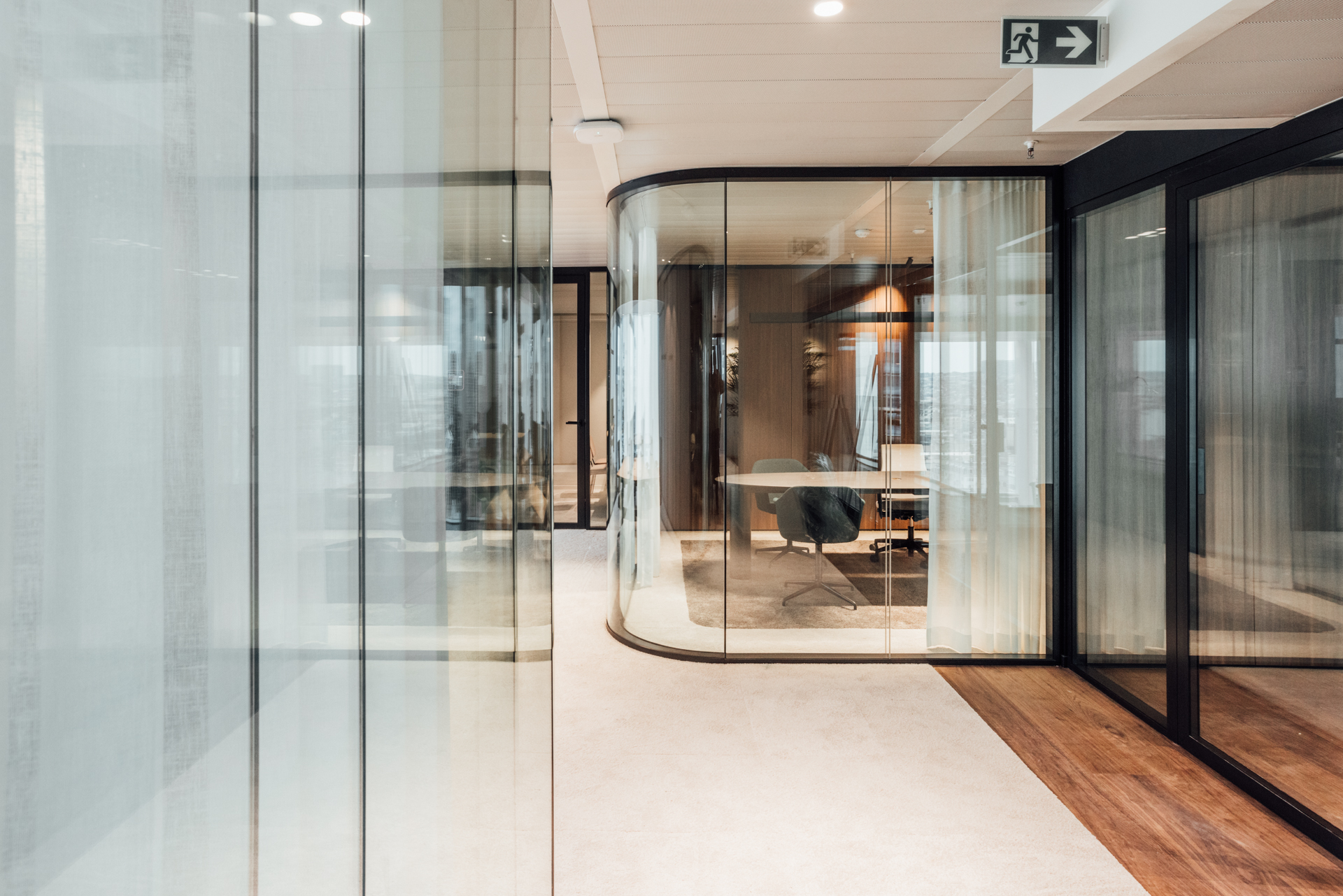 Walking through the Ageas office is like navigating through open spaces framed by acoustic walls and curved glass partitions, each concealing something unique. From focus zones for solitary work to meeting rooms designed for team collaboration, corner offices, and coffee corners where casual conversations brew.