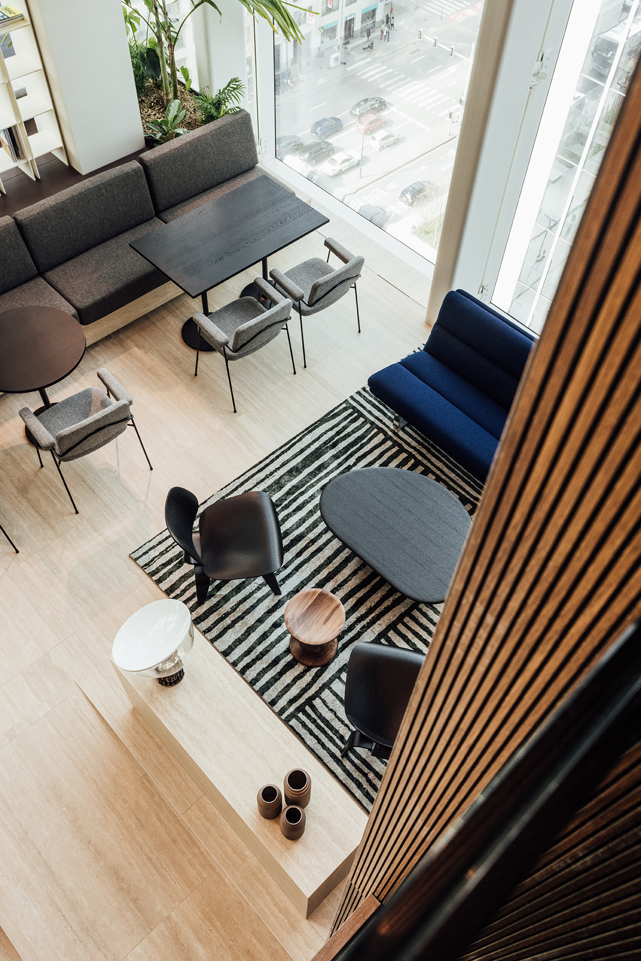 In fact, the first thing you encounter on each floor is the coffee corner, strategically placed to foster spontaneous encounters while maintaining peace in the rest of the office.