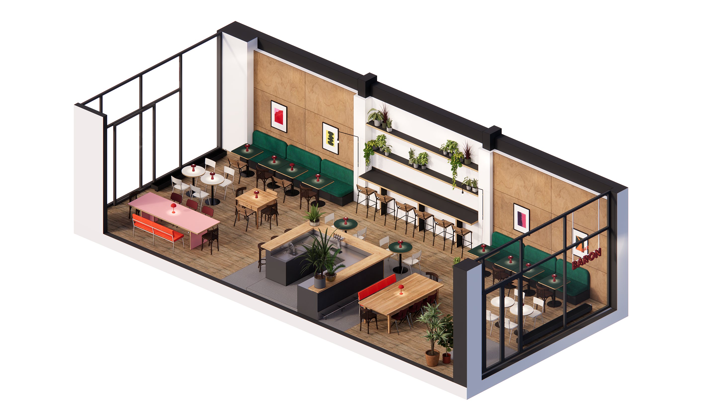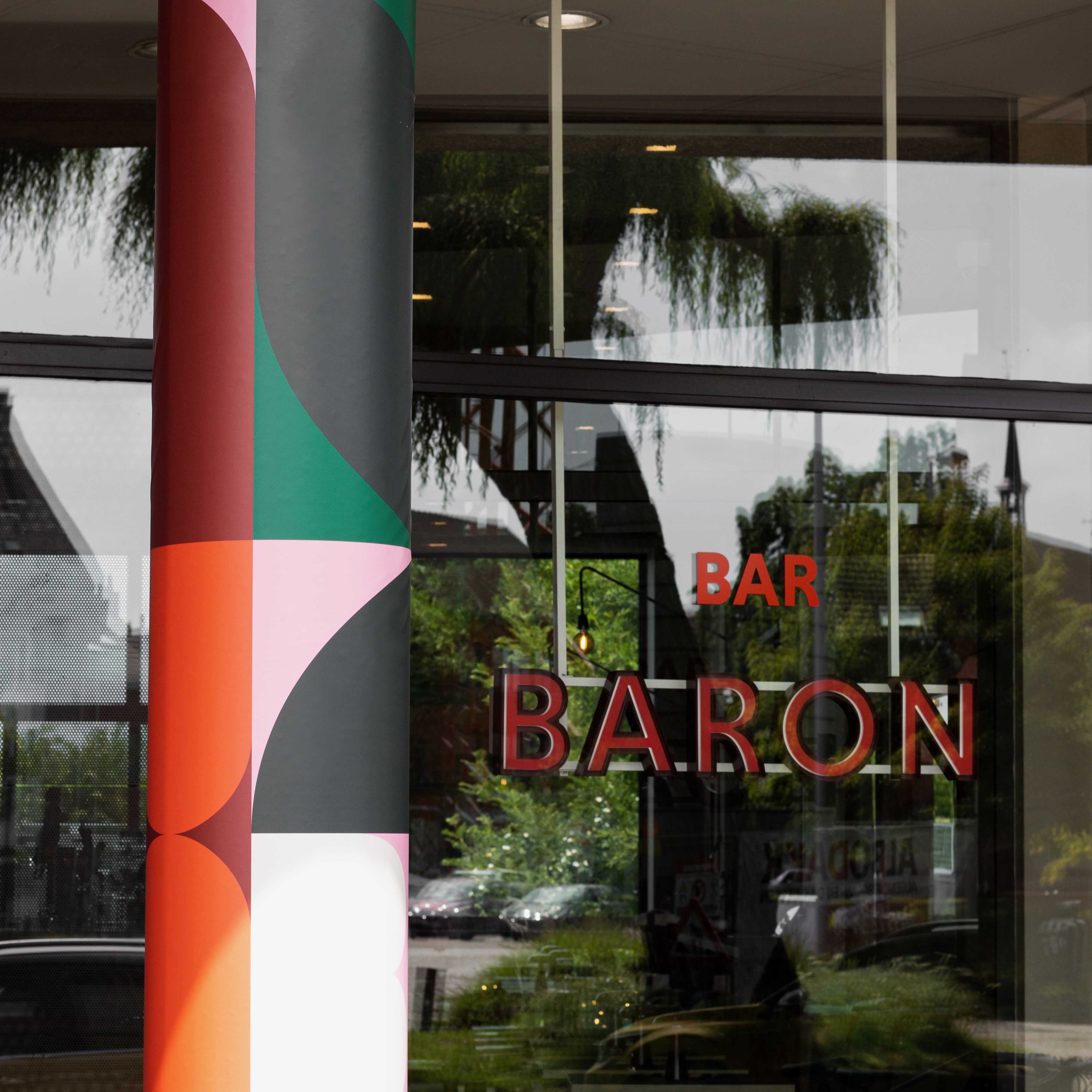 The café we're referring to is the well-known café 'De Curve' located at Baron August de Becker Remyplein in Kessel-Lo (Leuven). This popular neighbourhood café underwent a metamorphosis, reemerging as 'Bar Baron' – a homage to its surroundings.The café's new identity is characterized by a distinctive color palette that is echoed throughout: on the walls, in the artwork, as well as in the furniture. Everything exudes a youthful, relaxed atmosphere that aligns with Unicorn's profile.