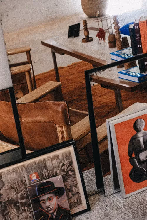 Serge selected all art and books himself. He worked together with Belgian artist Eva Lynen to create custom Roca art.