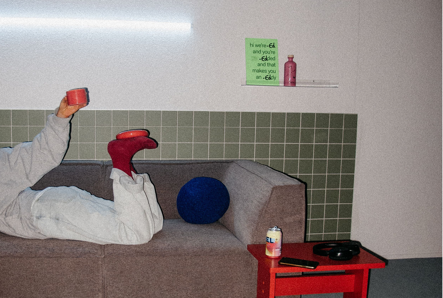 The Ed isn’t just a building—it’s a Gen Z hub. Each resident becomes an Eddy, living their best chaotic Eddy life in spaces like Chill-Ed (cinema pit + ping pong), Pump-Ed (fitness), and a study zone. We teamed up with Amber Gyselings and Buro Muro to create edgy posters that were pasted on the walls guerrilla-style—just like street flyers. And yes, students are already reusing the iconic green Ed storage crates as bike baskets.