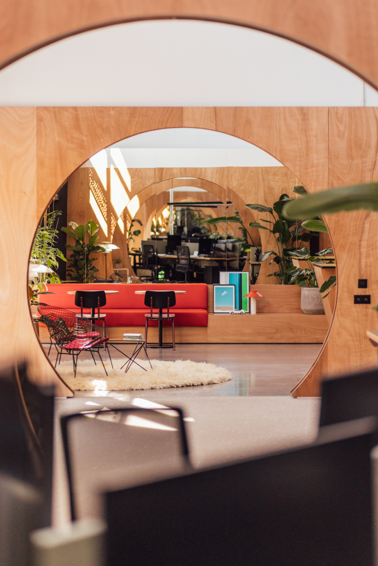 For the design, we used three core principles. Inspired by TV Limburg's visual DNA, we took the lens as our starting point. This idea led to a spatial narrative built around framing, focus, and perspective. Sight lines and perspectives now create a playful yet functional layout.